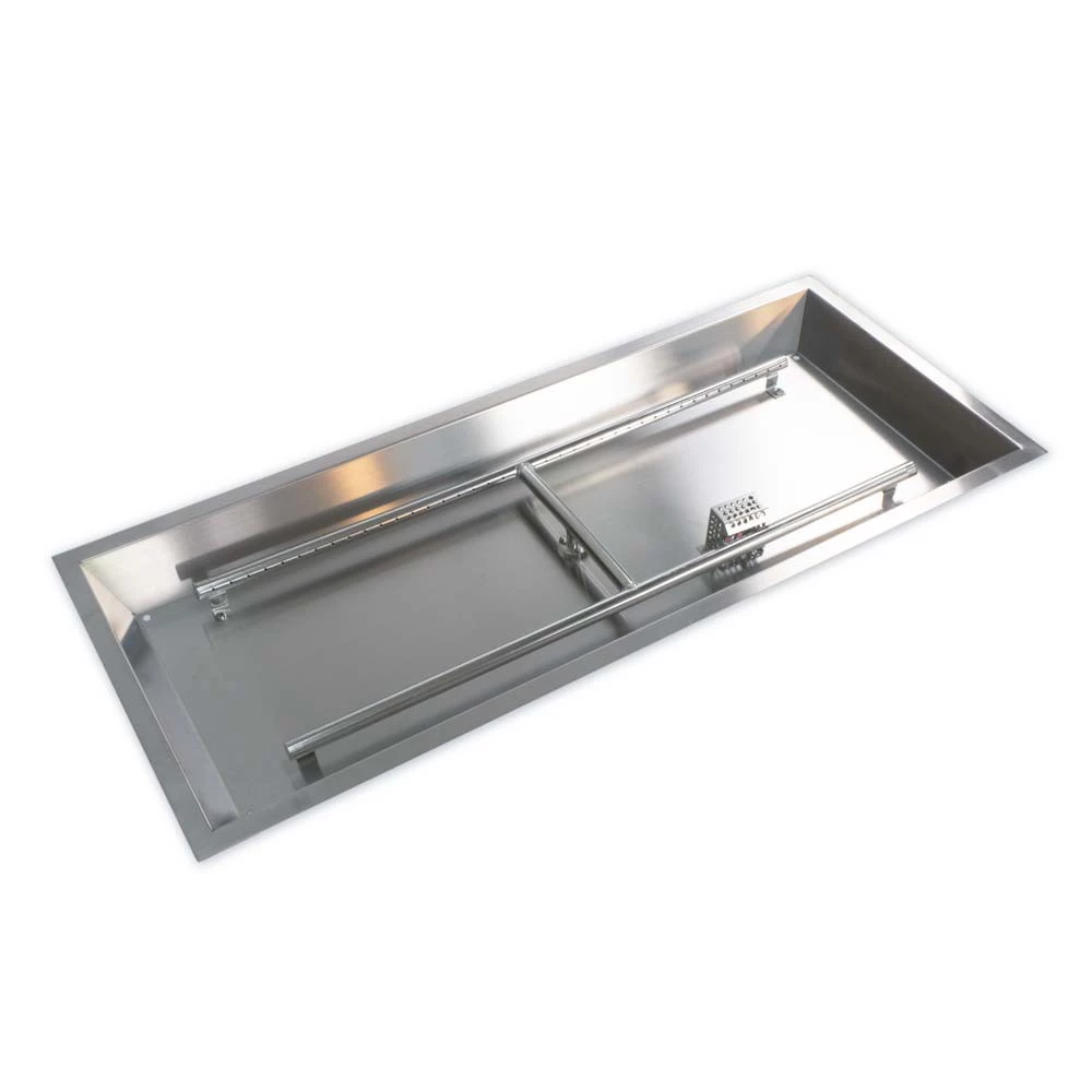 Stor rektangulær gasbrænder til udendørs brug. Indsatsen passer til flere gaspejse. Perfekt til dit byg-selv projekt, så du får en udendørs pejs efter din smag (Læs mere)