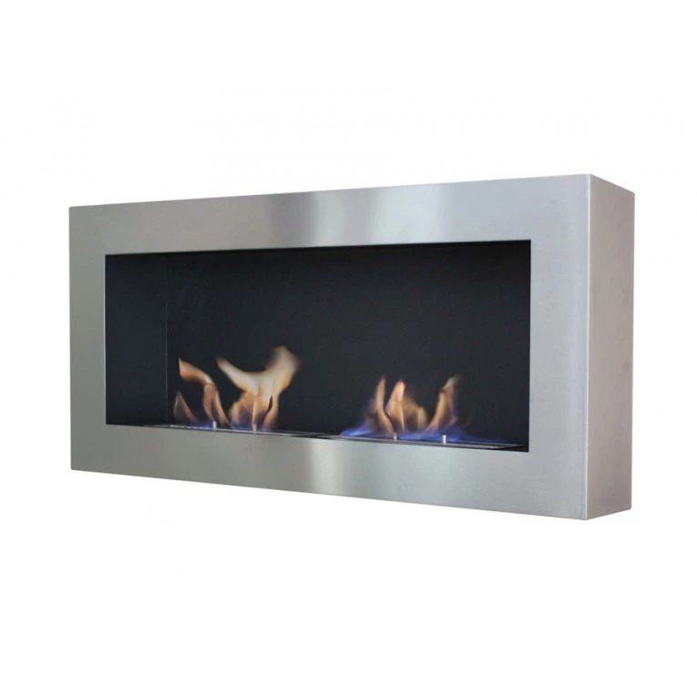 Stor væghængt biopejs i rustfrit stål med to brændkar og en forventet brændetid på 5 timer. (Læs mere)